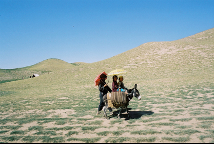 We came across this surreal sight of a father and children crossing the desert