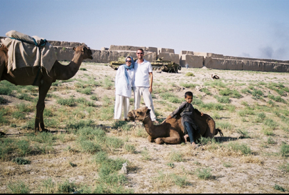 Camel and shepherd child in desert between Mazar and Sheberghan.