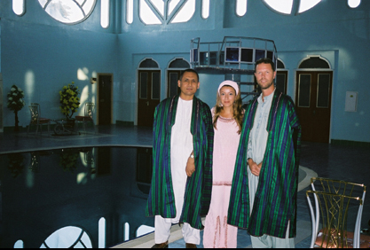 Inside Dostum's palace compound wearing Turkmen gupi.