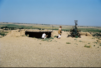 Inspecting Taliban trenches and weapons on hill overlooking Khowja Dokho.