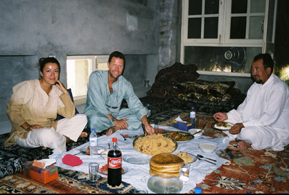 Enjoying lunch with a Turkmen carpet merchant, Akcaj.