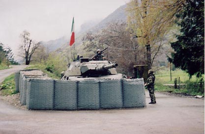 UN Kosovo Force tank and roadblock, Italian Sector.