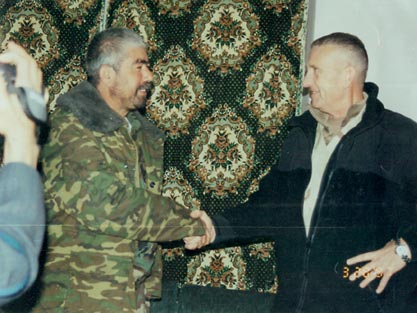 Dostum greets 4 star general Tommy Franks the head of Centcom (Central Command)