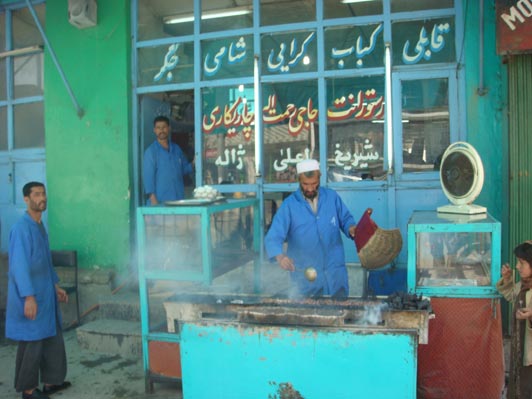 One of numerous kabob stands selling delicious beef skewers in Kabul.