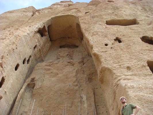 The outline of the smaller Buddha is still clearly visible in its niche.