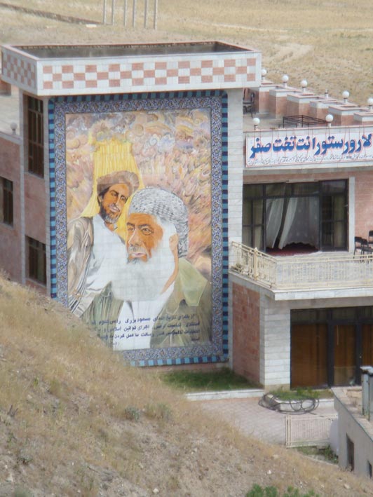 Painting on the side of a building featuring Ismail Khan and his fellow Tajik ally, Massoud.
