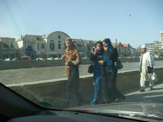 Increasing number of young women walking the streets of Kabul without burqas on.