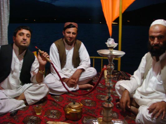 Enjoying a water pipe with some Pashtuns from Kandahar.