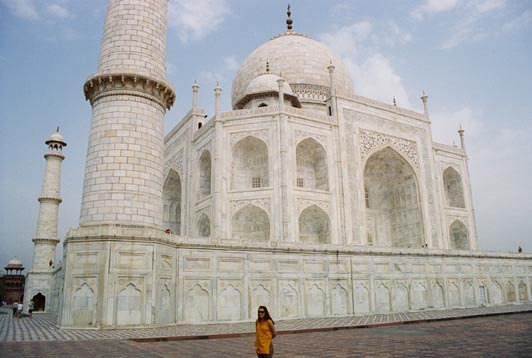 Closeup of the Taj Mahal.