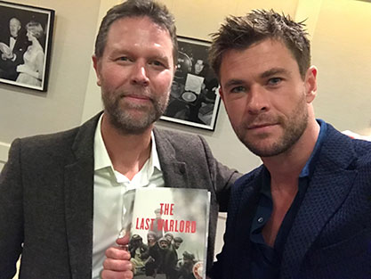 In Hollywood with actor Chris Helmsworth, aka Thor, and my book
