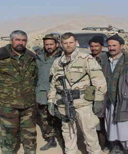 The very real Green Beret leader Mark Nutsch, who has graciously lectured in my classes, with the real General Dostum of Afghanistan in 2001