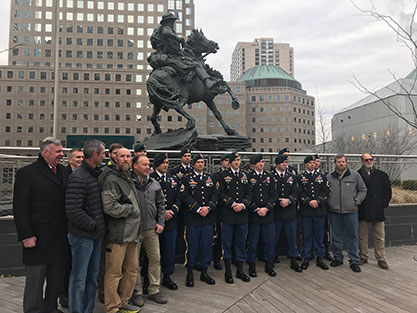 The producers of the movie flew General John Mulholland and the original team members in civilian clothes and the new A-Team members to New York for the red carpet debut of 12 Strong. Here they are with Captain Mark Nutsch, in grey, and General Mulholland, who lead the overthrow of the Taliban in black, on the left. 10 members of the original 12 Strong Green Beret A-Team |