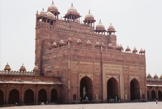 Ceremonial entrance to the Moghul ‘ghost palace’ of Fatehpur Sikri built in 1571 by Emperor Akbar. It was abandoned fifteen years later. Near Agra.