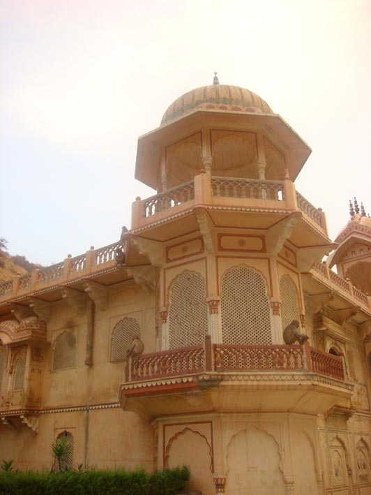 Hundreds of monkeys scamper around the temple complex of Galwar Bagh.