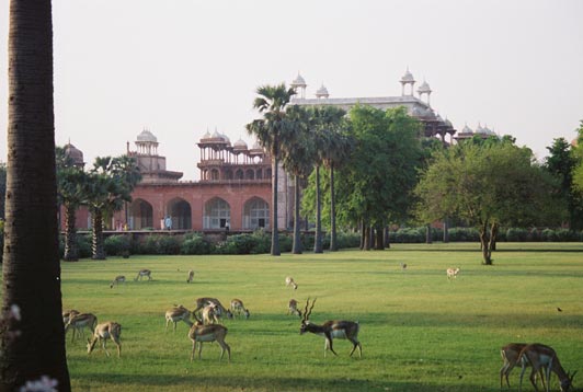 Ibex playing in the Moghul gardens of the palace of Sikandra near Aghra.