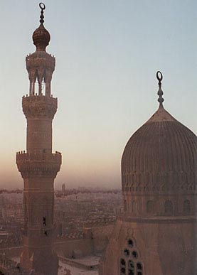 View of Cairo sunset from the roof of the Mameluk era (14th century) Sultan Hassan Mosque