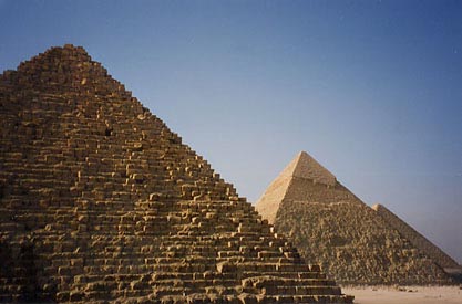 The three great pyramids of Khufu, Khafre and Menkaure built aprox. 2,600 BC