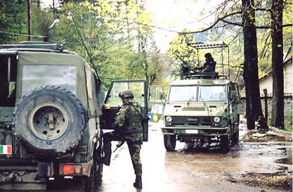 Kosovo (KFOR) troops guarding Orthodox monastery.