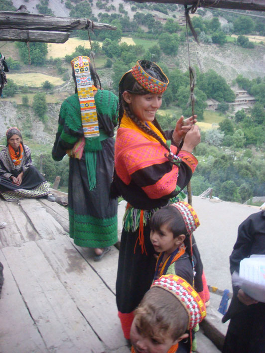 On balcony with Kalash women.